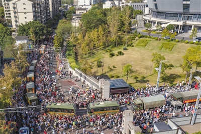 近日,重庆多地发生山火,在各方力量的共同救援下,目前重庆全部火场的明火已扑灭。8月28日,圆满完成此次山火扑救任务的300多名云南森林消防队员撤离重庆,众多重庆市民自发欢送。