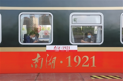 当日,Y701次上海至嘉兴“南湖·1921”红色旅游列车恢复开行。这是长三角地区疫情趋稳后,中国铁路上海局集团有限公司今年推出的首趟常态化开行的跨省红色旅游列车。