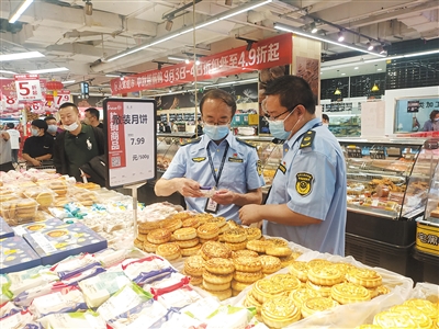 1日上午,永辉超市万达店刚开门不久,市市场监管局工作人员便来到超市内,首先对盒装月饼和散装月饼进行了抽样。随后,对水果、蔬菜、肉制品等节日期间消费量大的食品进行了抽样。在对水果蔬菜抽样时,记者看到,工作人员将相同的蔬菜水果抽了两份,接着将信息输入国家食品安全抽样检验信息系统,并由抽样人员和超市工作人员签字确认。对此,市市场监督管理局相关负责人表示,抽检散装食用农产品时,以同一产地、生产者或进货商,同一生产日期或进货日期,同一规格等级的同一种产品为一个抽样批次,抽检蔬菜时,要从同一批次中抽取无明显腐烂、长菌或其他表面损伤的样品……现场抽样后,工作人员当场将信息输入国家食品安全抽样检验信息系统,并封样。工作人员在进行抽检时,不少消费者将购买的蔬菜送到了工作人员带来的快检设备前,看看自己购买的蔬菜农药残留是否合格。
