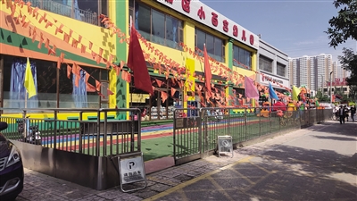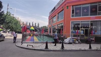 接到反映后,记者赶往恒圆魏都小区附近走访,发现在太安路北段马路两侧的便道上,两家幼儿园一东一西将便道圈起来,用作幼儿园的活动场所。