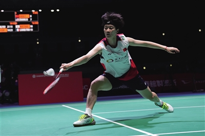 9月1日,在日本大阪举行的日本羽毛球公开赛女子单打第二轮比赛中,中国选手陈雨菲以2∶0战胜美国选手张蓓雯,晋级八强。图为陈雨菲在比赛中回球。