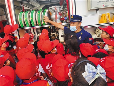 “叔叔,这辆消防车这么小,主要用途是什么?”“叔叔这些工具都是用来做什么的?”参观消防车、消防设备的环节中,小记者们对消防车和里面的消防器材很感兴趣,围着消防员问个不停。消防员用通俗易懂的语言,耐心地为小记者解说每一样器材的名称、用途和使用方法,并简单地进行操作示范。小记者们表现出了极其浓厚的兴趣,边听边问。为了让小记者们更好地了解体验消防,消防员还指导大家穿上消防衣坐了一回消防车。