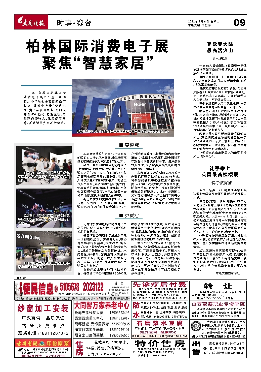 ~~~2022年德国柏林国际消费电子展2日至6日举行。今年展会全面恢复线下举办,展品中大量“智慧家居”类产品吸引眼球,它们大都具有个性化、智能互联、节能环保等特点,正朝着更智慧、更灵活的方向不断演进。