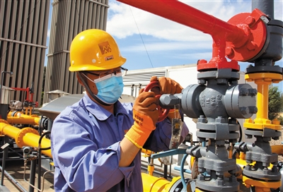连日来,大同华润燃气有限公司积极做好节前气源调度、隐患排查、应急处置和服务保障等工作,让全市人民平安和谐过两节。图为5日,工作人员正在对管网进行维护巡检。本报记者 韩堃 摄