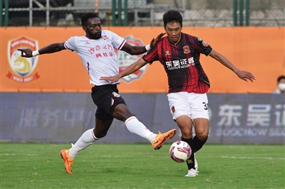 9月7日,在江苏南京举行的2022赛季中国足球协会甲级联赛第19轮比赛中,苏州东吴队以3∶0战胜新疆天山雪豹队。