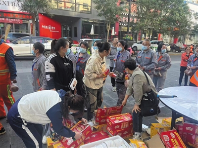 本报讯 (记者 杨昱郁) 8日早晨,300名环卫工陆续来到平城区楼房巷一家饭店免费就餐,每人还领到月饼、苹果、八宝粥等节日礼物。