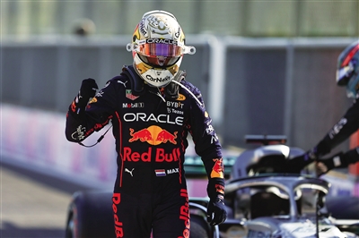 9月11日,在2022赛季世界一级方程式锦标赛(F1)意大利大奖赛中,红牛车队荷兰车手维斯塔潘获得冠军。图为维斯塔潘在比赛后庆祝胜利。