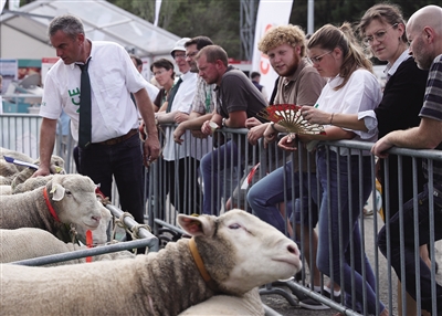 ▶ 9月13日,人们在法国雷恩畜牧业展览会上参观展出的绵羊。