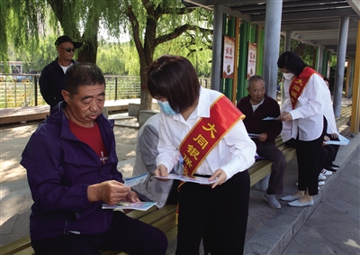 工作人员向市民宣传防诈知识 本报记者 韩堃 摄