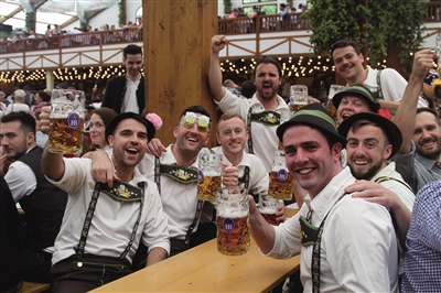 ◀ 9月17日,人们在德国慕尼黑啤酒节上享用啤酒。