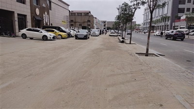 接到反映后,记者在永久路走访发现,该路的北段西侧大约有200多米长的非机动车道、便道成为土路,还有一些剩余的管道堆放在路边。路面坑洼不平,行人通过时鞋、裤子都落满了尘土。附近一家商铺的员工说:“不知是哪家单位施工后没有硬化路面,很影响我们的生意。”