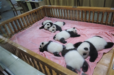 这是9月21日在成都大熊猫繁育研究基地太阳产房内拍摄的新生大熊猫幼崽。