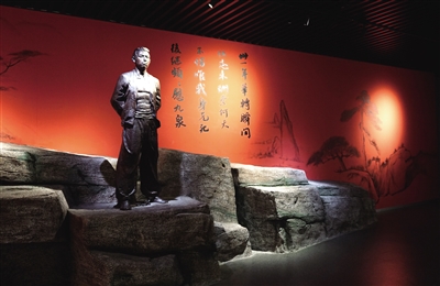纪念馆最后一幕呈现了邓恩铭牺牲的场景。他戴着镣铐站在层叠的巨石上,大义凛然,视死如归。身后是红彤彤的背景,一株株劲松傲然屹立于悬崖峭壁之上,并配有一首诗:“卅一年华转瞬间,壮志未酬奈何天。不惜唯我身先死,后继频频慰九泉。”这是邓恩铭就义前,壮怀激烈写下的《诀别》,读罢禁不住眼眶湿润。邓恩铭牺牲时年仅30岁,正值风华正茂。他悲叹的不是“年华转瞬间”,而是救国救民的“壮志未酬”。个人的生命算不了什么,希望后来者继续为革命披荆斩棘、勇往直前,让一个个胜利的捷报频频传来,以告慰自己九泉之灵。整首诗表达了舍生取义的家国情怀和对革命后继有人的坚定信心,充满革命浪漫主义英雄气概。