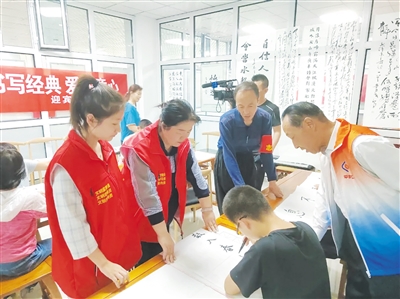 本报讯 (记者 郑林) 近日,平城区迎宾街道和泰社区联合迎宾街道未成年人保护工作站、惠诚社会组织联合会共同开展“书写经典 爱润童心”软笔书法学习活动。