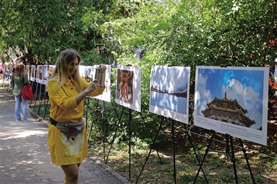 ◀ 9月24日,在罗马尼亚布加勒斯特,人们参观亚洲艺术节上的图片展。