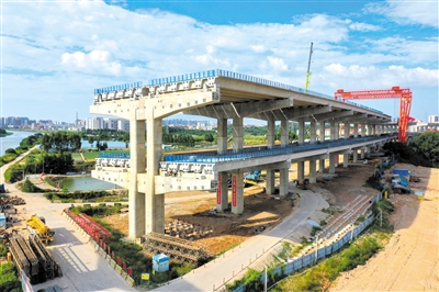 ▲ 9月27日拍摄的莞番高速双层桥架梁施工现场(无人机照片)。