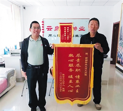 得知王女士的情况后,颐园小区物业维修队队长王海龙不顾手上有伤,立即来到业主家楼顶用地暖管从排风口疏通,暂时缓解了管道堵塞。为了彻底解决问题,王海龙仔细排查上下楼层管道情况,并提出解决方案。当时,业主家的下水主管道已用瓷砖包贴,维修需破砖,业主有些犹豫。王海龙耐心细致地和业主沟通,最终得到同意。于是,王海龙切开瓷砖,在主管道2.5米深处,用维修部员工制作的3米长的铁钩伸进管道深处,用了2个小时,把堵塞的杂物全部取出。管道疏通后,物业保洁部队长郭子英用红砖把业主家破开的墙砌好,物业员工们又给王女士找到颜色相匹配的瓷砖并粘贴好。贴心的服务让王女士非常满意,她与家人制作了锦旗送到物业表达自己深深的谢意。