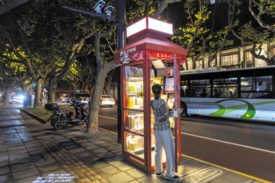 近日,在上海市长宁区新华路上,新华路街道联合新华书店和中国电信,将5个闲置电话亭重新布置为一平方米大小的微型书店——“新华路书店”。采用全自助式的新华路书店是公益性质快闪书店,于9月29日至10月3日对公众开放。市民可随意取下店里的书坐在路旁阅读,或扫码购买带走,出售书籍的款项后续将用于助力公益事业。 本版文图据新华社