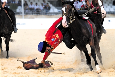 9月29日,吉尔吉斯斯坦选手在叼羊比赛中。