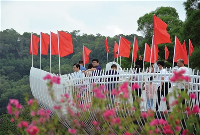 ▲ 在福建省福州市,市民在新开放的金鸡山公园茉莉花生态廊道上游玩。 本版文图据新华社