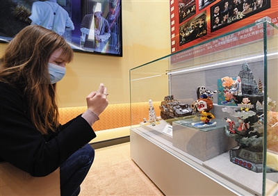 “天问一号”着陆器模型、“奋斗者”号全海深载人潜水器模型……室外展区,一件件展现新时代中国人上九天、下五洋壮志豪情的展品,吸引外宾们拍照留影。