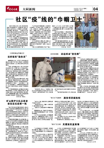 完成一天的任务,即使再疲倦,张雪峰也要关注官方的消息,每每看到有被封控小区从高风险区转到中风险区再到低风险区,他由衷高兴,“大家一起努力,胜利属于我们!” 本报记者 邸东芳