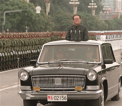 1999年10月1日,中华人民共和国成立50周年盛大庆典在北京天安门广场举行。江泽民同志检阅由人民解放军陆海空三军和人民武装警察部队、民兵预备役部队组成的地面方队。 新华社发