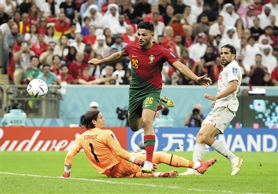 可以说这是一次赌博,而桑托斯的选择看来是正确的:顶替C罗进入首发的冈卡洛·拉莫斯不辱使命,完成“帽子戏法”;葡萄牙队打出了本次世界杯以来最酣畅淋漓的比赛,面对实力绝不算弱的瑞士队,以6∶1的大胜强势进入八强。