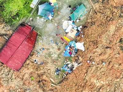 ◀ 这张马来西亚雪兰莪州消防救援部门12月16日公布的照片显示,救援人员在云顶高原附近的滑坡现场搜救。