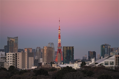 12月19日,日本东京目黑车站附近,日落时分的东京塔。