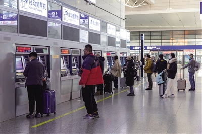 12月24日,旅客在上海虹桥火车站自助售票机前办理火车票业务。