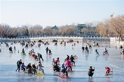 元旦假期第一天,不少游客来到北京北海公园冰场游玩,感受冬日乐趣,迎接即将到来的2023年。