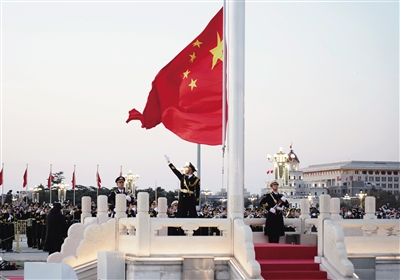 “向国旗——敬礼!”7时36分,《义勇军进行曲》在天安门广场响起,现场观众的眼神坚定自信,目视国旗缓缓升起……当国旗升至旗杆顶部,人群欢呼如潮,喜悦之情溢于言表。
