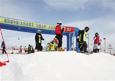 本报讯 (记者 陈杰) 1月7日,第四届中国·大同冰雪节“白登山杯”大众滑雪公开赛启幕,来自京津冀的百余名滑雪爱好者在冰雪上竞速角逐,参赛者高超的滑雪技术展现了冰雪运动的魅力。