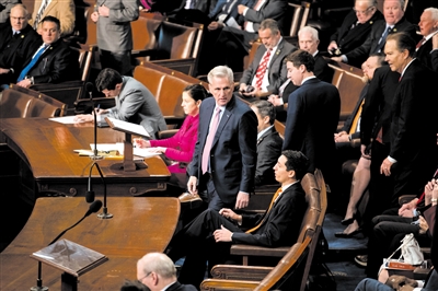 共和党掌控众议院222个议席,民主党控制212个议席。尽管共和党占据议席优势,但由于麦卡锡遭到党内极端保守派阻击,经历3天11轮投票,众议长依然“难产”。