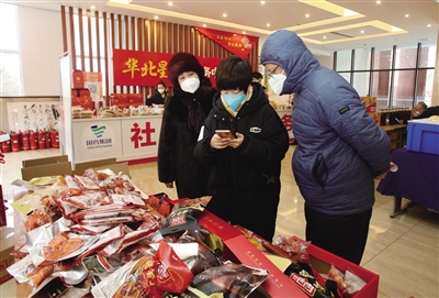 图为昨日,居民在华北星社区“年货节”购买半成品。