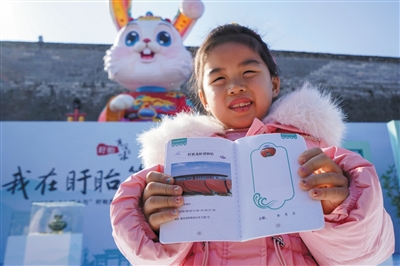 ▲1月10日,在南京老门东历史街区,一名小游客展示领取的“旅游护照”。