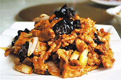 过油肉的做法复杂,极为考验做菜人的功力。制作时,先将猪里脊肉、黄瓜、木耳切片,葱、蒜、姜切末;切好的肉片加黄酱、花椒水、酱油、盐拌匀,并用料酒、味精、酱油、淀粉调成芡汁。锅中热油,下肉片后迅速用筷子拨散,滑炒至变色后用漏勺捞出,沥去多余油。之后,将葱、姜、蒜煸炒出香味,再次放入肉片及黄瓜片、木耳片,用山西老陈醋烹一下,并倒入调好的芡汁炒匀。最后,淋明油,香喷喷的过油肉就可以出锅了。