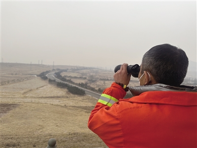 “云冈区有近29万亩的林地和近29.5万亩的草地,防火形势严峻,因此,我们在林区内一共建设了12座瞭望塔,配备了36辆小型消防水车,已经逐渐形成纵向到底、横向到边、上下联动、左右协调的森林防灭火责任体系。”云冈区林业局副局长吴勇介绍说,每年10月到次年5月是山火高发期,随之而来的是繁重的防火任务。每到这个时间点,区、镇、村三级就会加派人员进入到张寺窑村的防火点,加强防火巡护工作。2019年,云冈区在张寺窑村旧址修建了这座瞭望塔,登上高14米的塔楼,脚下的林地一览无余,一旦有火情,就能很快知道。