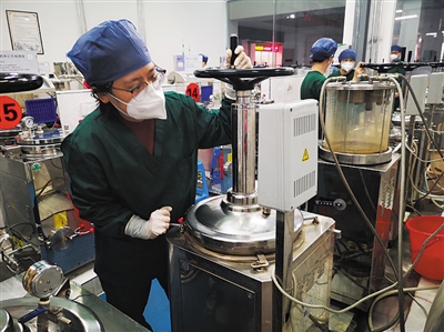 “这批药时间差不多快到了,大家做好准备,这次熬的是加味升陷汤,装袋后统一放在门口的桌子上,打包好贴上标签送到导诊台的取药处……”该院药剂科主任杨洁叮嘱工作人员。她告诉记者,近期前来购买汤药治疗新冠感染的市民很多,药房所有工作人员加班加点,自动煎药机满负荷运转,每天熬制近2000剂新冠协定方,全力保障市民用药需求。