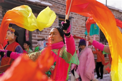 新春佳节临近,在太行山深处的河北省邢台市信都区将军墓镇内阳村,村民们紧锣密鼓排练锣鼓、腰鼓、跑驴、扭秧歌、划旱船等传统乡艺节目,为即将举办的“村晚”做准备。内阳村历史悠久,村中有古戏楼、古院落等历史建筑,被列入第五批中国传统村落名录。
