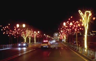 春节临近,我市公园、沿街建筑物、行道树、绿化带挂上各种彩灯,将城市装扮得流光溢彩、璀璨缤纷。一盏盏美丽的花灯,带来浓浓的年味儿,为寒冷的冬天增添了一道温暖祥和的靓丽风景。