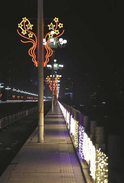 市住建局负责人向记者介绍,受疫情影响,原本50天的工期压缩到了20余天,他们从2022年12月底开始对涉及的桥体、道路进行全面施工,采用主题灯光造型、主题灯光灯饰、中国红灯笼、彩球、冰条灯、串灯等造型灯具进行装饰。1月17日全部完工。