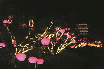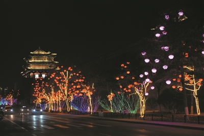 古城内处处流光溢彩,沉浸在欢乐祥和的气氛中。为全力做好春节亮化工作,市古城保护发展中心提早着手,精心谋划,科学安排,1月14日完成了古城内的亮化工程。“除了在内环路、十字街进行亮化,今年我们还‘点’亮了四牌楼,挂上了红灯笼并加装了射灯,钟楼、太平楼等也将亮起来。”市古城保护发展中心负责人介绍,在亮化设备选材上,均采用LED系列小功率、高效能的灯具,对树木不会造成损伤。
