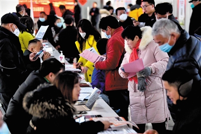 1月28日,求职者在安徽省亳州市一人力资源市场咨询、应聘。