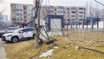 据常女士讲,她家楼房西侧是兴国寺街,该街西侧1米多外有一处供电电杆,上面不仅安装了几个装有电表的铁盒,还有其他用电设备。这些设备紧挨地面,有些电线拖拉在地上,有的线头还裸露着。由于附近居民较多,如果有小孩在这些设备附近玩耍,很有可能出现意外。