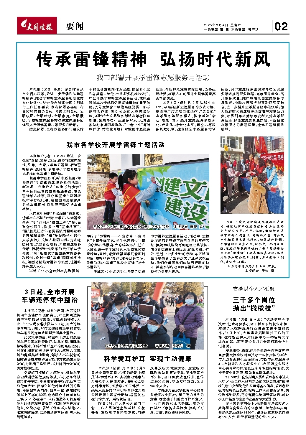 按照部署,全市各级各部门要以传承和弘扬雷锋精神为主题,以城乡社区和各类窗口单位、公共服务机构为依托,广泛开展学雷锋志愿服务活动,使民生领域成为传承和弘扬雷锋精神的重要阵地。充分发挥窗口单位系统党员干部示范带头作用,吸引公众加入志愿者队伍,不断壮大公共服务领域志愿者队伍规模。聚焦各类社会服务对象,尤其是救助对象等困难群体、“一老一小”等特殊群体,常态化开展针对性的志愿服务活动,帮助群众解决实际困难,改善生活状况,在暖人心的服务中将学雷锋真正落到实处。