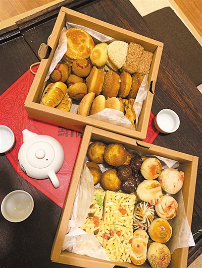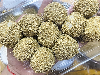 林信斋还有许多“专属产品”,诸如林信斋京八件、麻团等。林信斋京八件与稻香村的京八件不尽相同,由8种点心组成,有苹果、寿桃、元宝、石榴、绣球、麻球、佛手、枣花酥,馅料只有五仁和枣泥。为了保证品质,制作林信斋京八件时,每次只和2斤面,精工细作。