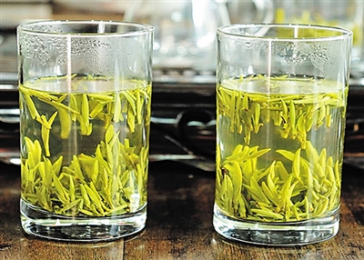 采访中记者了解到,一般常见的泡茶用具以玻璃杯、紫砂壶和陶瓷盖碗这三种居多,但在冲泡早春细嫩的名优绿茶时,最好选用玻璃杯冲泡。这是因为玻璃茶具具有质地透明、导热快的特点,用其泡茶可以更好地观察到茶叶在水中缓慢舒展、变幻的过程,以及茶汤的色泽变化。另外,早春茶较为娇嫩,冲泡时水温不要过高,这样泡出的茶汤口感更好,又能保留营养。冲泡时,先将85℃—90℃开水冲入杯中,然后取绿茶投入,一般不用加盖。