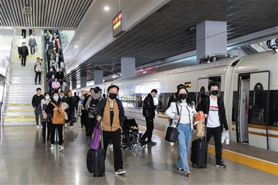 4月1日,准备乘坐G99次列车的旅客陆续进站乘车。